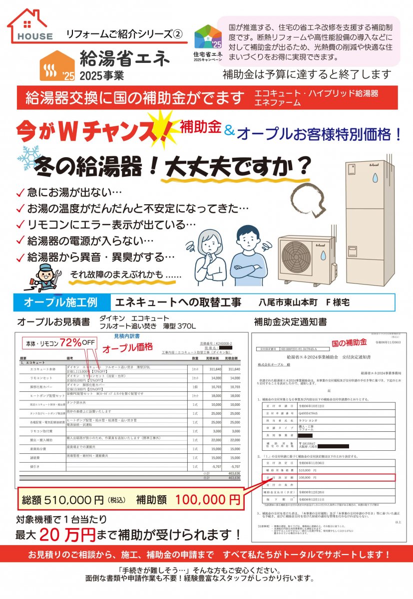 いつもありがとうございます!オープルでマンション・戸建住宅のリフォームを承ります!第2弾は給湯器のご紹介です!今回ご紹介させていただく給湯器の交換は、オープル特別価格に加え、対象機種1台あたり国の補助金が最大20万円の補助を受けられます!詳細は下記チラシをご覧ください👀⭐